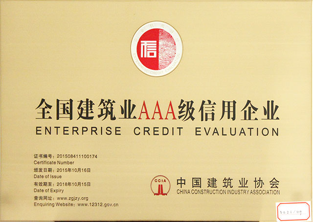 熱烈慶祝我公司榮獲全國建筑業(yè)AAA級信用企業(yè)稱號
