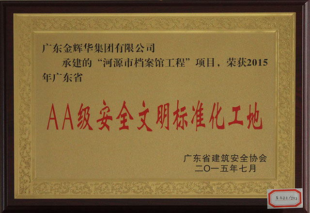 熱烈慶祝我公司榮獲AA級安全文明標(biāo)準(zhǔn)化...