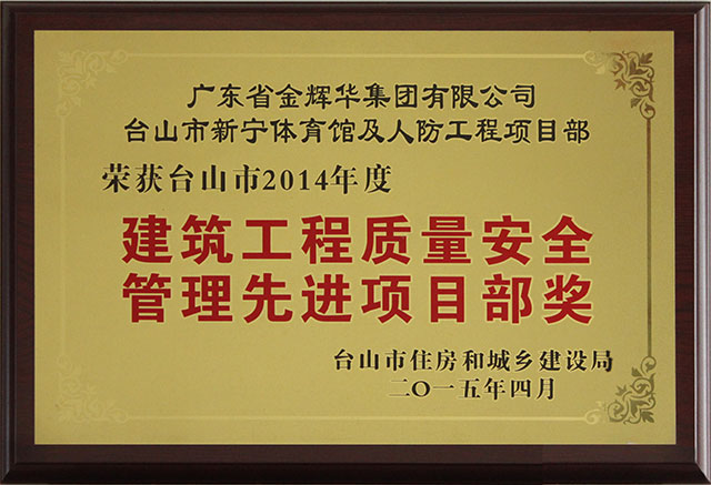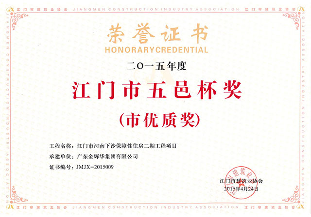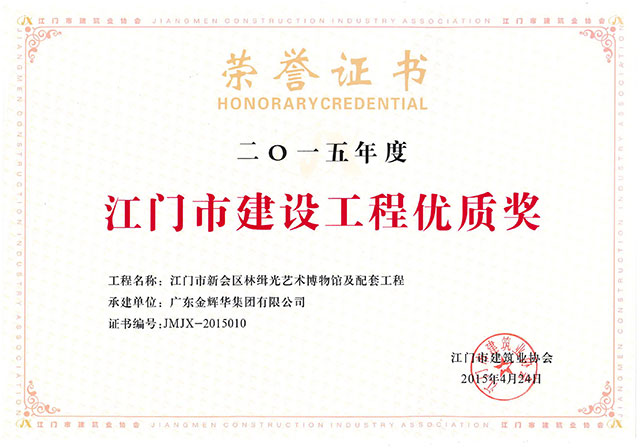 熱烈慶祝我公司榮獲江門市建設(shè)工程優(yōu)質(zhì)獎