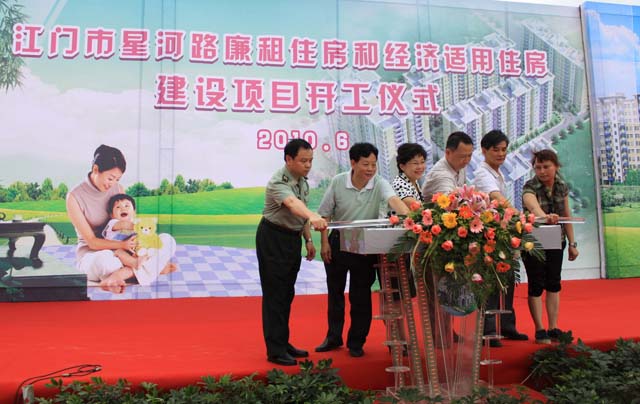 6月25日,我集團(tuán)公司承建的江門市星河路廉租住房和經(jīng)濟(jì)適用房建設(shè)項(xiàng)目開工儀式隆重舉行。市人大常委會副主任陳敏標(biāo)、副市長鐘軍、市政協(xié)副主席趙樹培、市委辦公室李光啟以及市住房和城鄉(xiāng)建設(shè)局局長馬克烈等領(lǐng)導(dǎo)和嘉賓出席了開工儀式。 在動工儀式上,馬克烈介紹,星河路廉租住房和經(jīng)濟(jì)適用住房建設(shè)項(xiàng)目規(guī)劃投資約1.52億元,其中廉租住房約9400萬元,經(jīng)濟(jì)適用住房約5800萬元;規(guī)劃總用地面積22988.6平方米