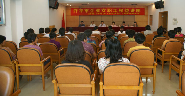 8月28日下午,市總工會(huì)聯(lián)合市婦聯(lián)在廣東 金輝華集團(tuán)公司舉辦企業(yè)女職工權(quán)益講座。市總工會(huì)副主席譚文業(yè)、市婦聯(lián)主席林斌,廣東金輝華集團(tuán)公司黨委 書記張解矛、工會(huì)主席陳維民都作了講話。講座由集團(tuán)公司女職委高迎春主任主持,由市總工會(huì)女職委主任許素...
