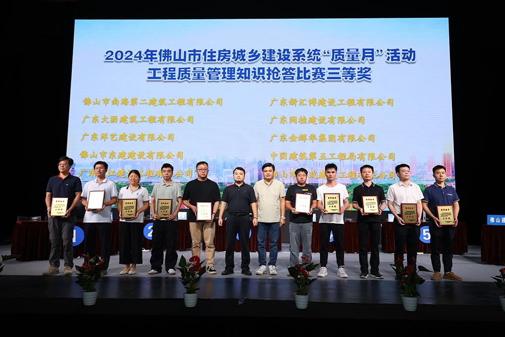 10月12日,由佛山市住房和城鄉(xiāng)建設(shè)局主辦的2024年佛山市住房城鄉(xiāng)建設(shè)系統(tǒng)“質(zhì)量月”活動工程質(zhì)量管理知識搶答比賽圓滿落幕。賽場上,金輝華集團代表隊與其他102家企業(yè)選手進行了筆試、搶答競賽等角逐。最終,隊員們憑借自身扎實的專業(yè)能力為集團公司贏得了競賽三等獎。