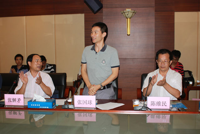 座談會上,主持人向大家介紹江門市國稅局局長林家慶先生