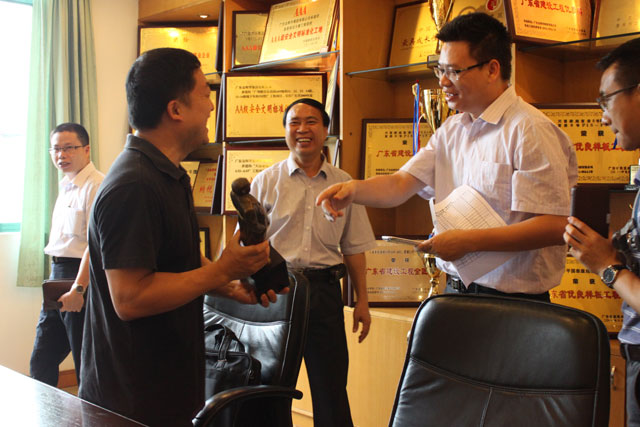 圖為江門市國(guó)稅局黨委辦公室主任錢明雄對(duì)我司的企業(yè)文化表示贊同,留影紀(jì)念