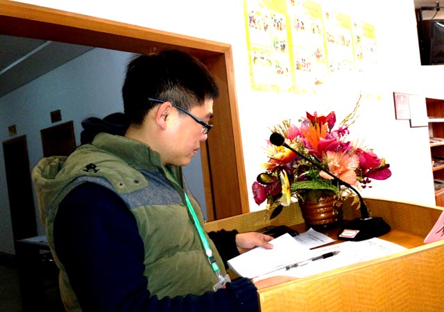 第一屆團(tuán)委書(shū)記鄭國(guó)燦在作工作報(bào)告