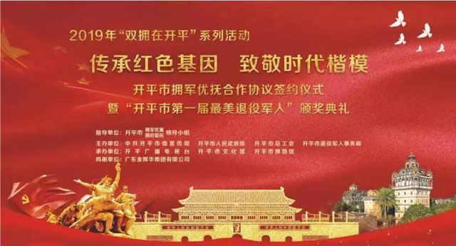 本次活動(dòng)主題為“傳承紅色基因、致敬時(shí)代楷模”,旨在通過對(duì)革命英雄、優(yōu)秀黨員、優(yōu)秀軍人的事跡回顧,進(jìn)一步學(xué)習(xí)他們的愛國主義之情,弘揚(yáng)“雙擁”精神。一直以來,我司高度重視“雙擁”工作,所以在本次的開平市第一屆“最美退役軍人”評(píng)選活動(dòng)中給予了有力的贊助。