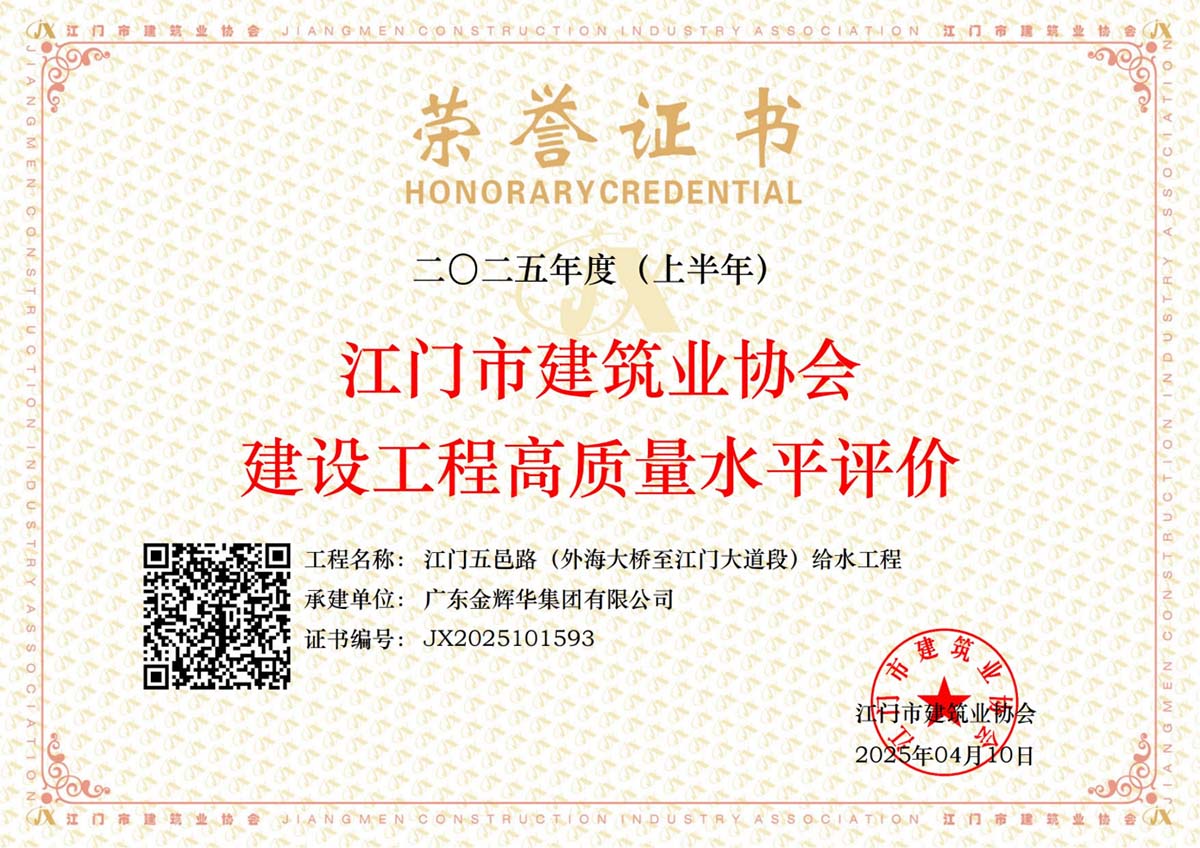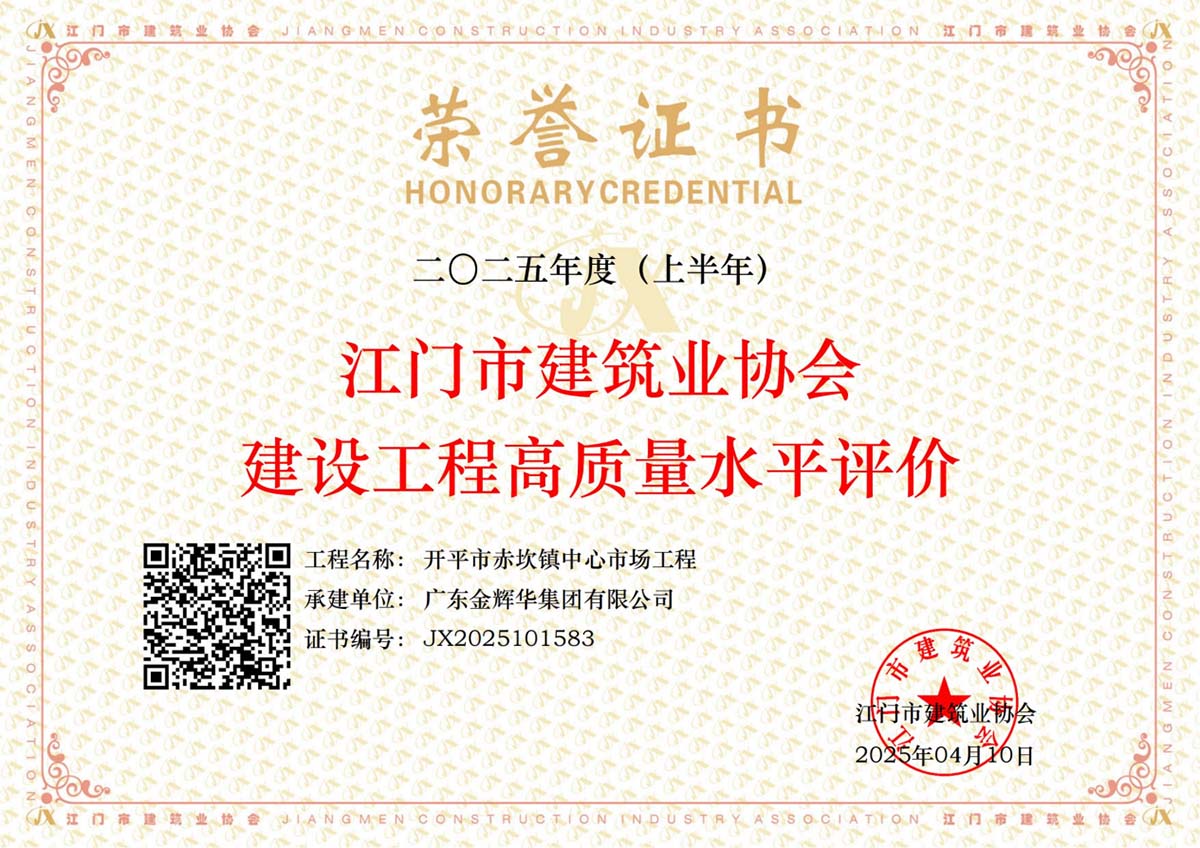 獲江門市建筑業(yè)協(xié)會(huì)建筑工程高質(zhì)量水平評價(jià)2項(xiàng)