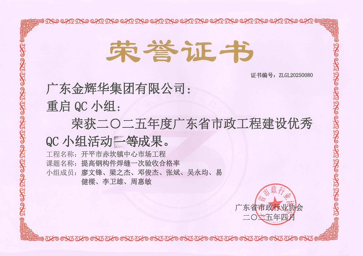 獲廣東省市政工程建設(shè)優(yōu)秀QC小組活動(dòng)成果3項(xiàng)