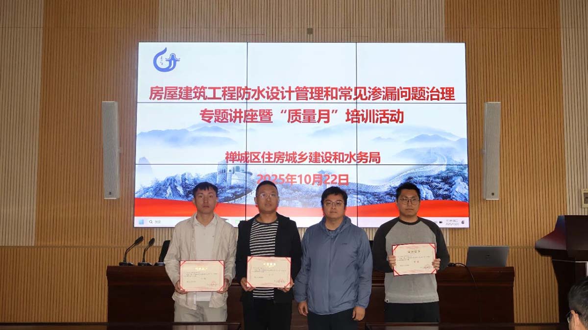 2025年10月22日,佛山市禪城區(qū)房屋建筑工程防水設(shè)計管理和常見滲漏問題治理專題講座暨 “質(zhì)量月” 培訓(xùn)活動,于佛山市禪城區(qū)建筑業(yè)協(xié)會101會議室圓滿落幕。金輝華集團積極參與其中,憑借卓越的表現(xiàn)和扎實的專業(yè)功底,在競爭激烈的防滲漏質(zhì)量管理知識競賽中榮膺桂冠,斬獲一等獎。
